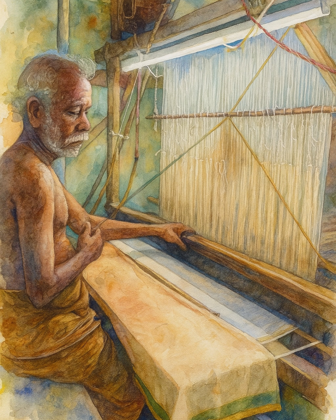 Each saree is a tapestry of patience and passion, carrying with it the scent of monsoon rains, the warmth of golden sunsets, and the quiet pride of hands that have perfected their craft over decades.